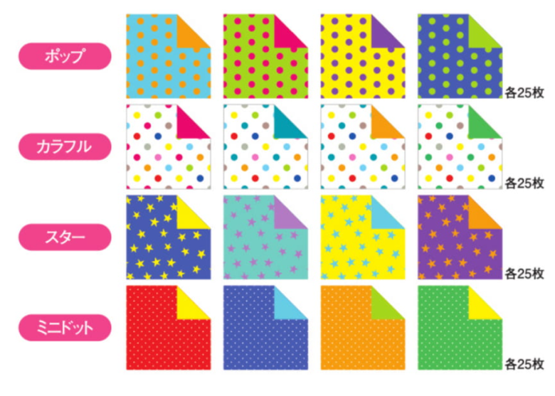 各4色調 25枚 100枚入 ポップ、カラフル、スター、ミニドットの4柄展開