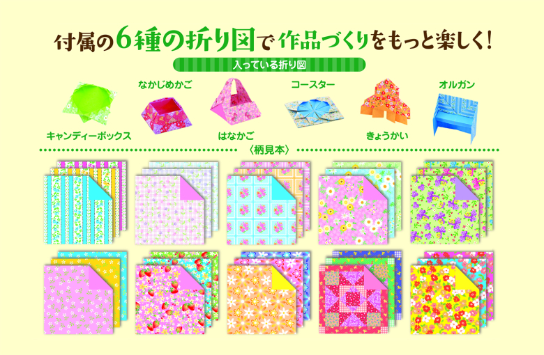 30柄(両面35色調) 各5枚 150枚入 6種類の折り図つき オルガン・コースター・はなかご・きょうかい・なかじめかご・キャンディーボックス